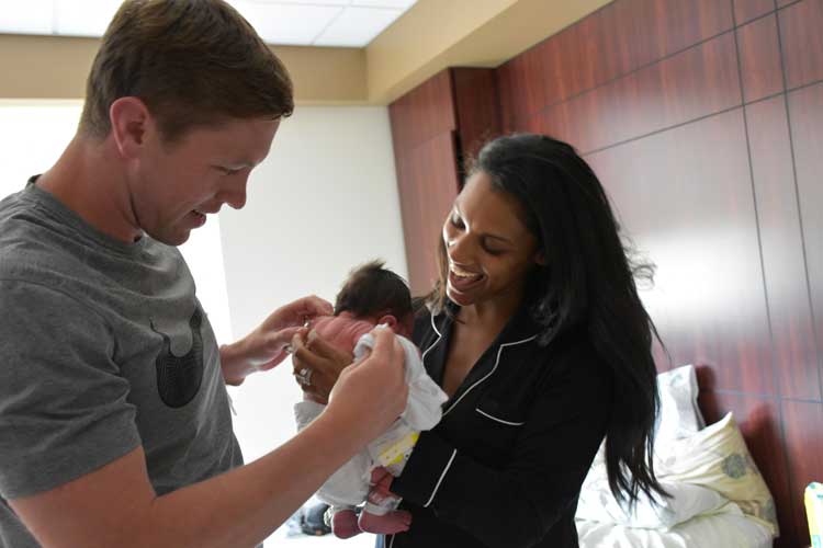 We made our way to the bed to have our own “magic hour” upon which we refused eye ointment or any disruption that wasn’t truly necessary, Iana placed him on my belly where he instinctively crawled to my breast. They helped him latch upon which Cory and I melted into a sea of tears. The only other time I saw him cry was on our wedding day. It was the rawest and happiest moment of my life. We are mommy and daddy, overwhelmed with joy and eternally grateful for our Doula , Iana Malcom, The Team at Amazing Births and Beyond and Serene Health OB/GYN for guiding and educating us through our dream birth. I know that even when you have a birth plan, things do not always go according to that plan so I am so grateful to be able to share our story.