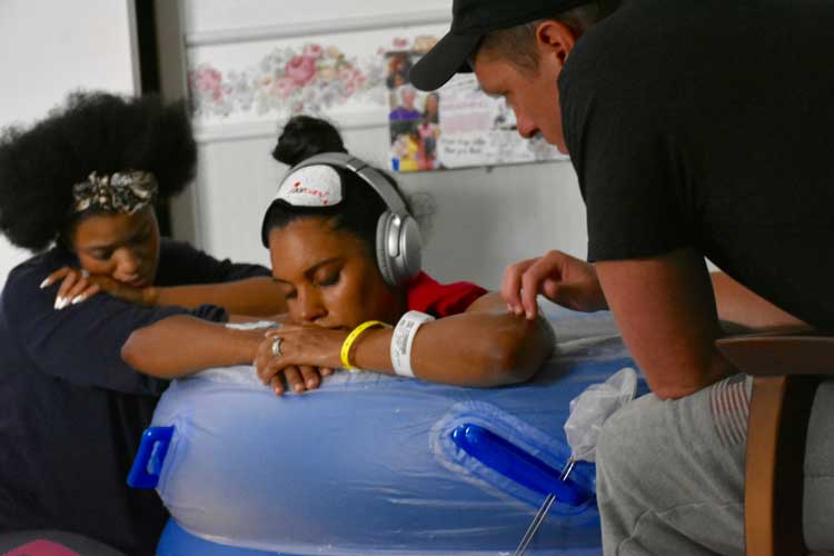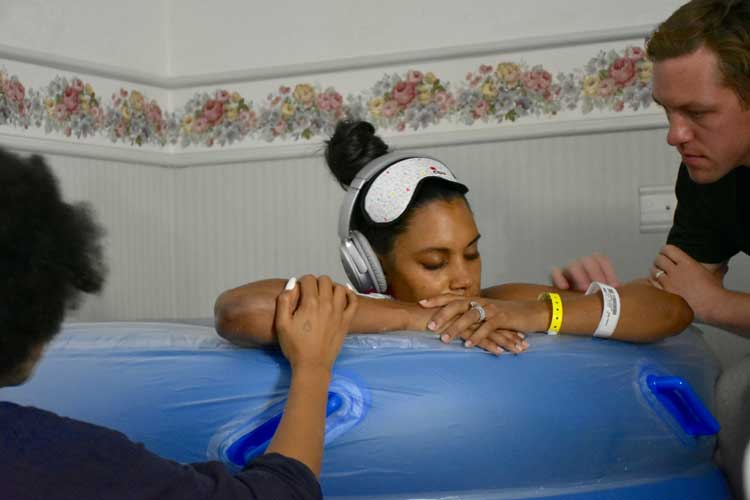 Iana instructed me that the tub was about finished, but she needed to get me on a peanut ball to get him to work his way down. She promptly and swiftly massaged my whole lower body before warning me that the next 3-4 contractions would be uncomfortable, but they were here with me the whole time. Cory at my face and Iana forcing my leg over the peanut, and guys, it literally became an outer body experience. I was shaking, had the chills and felt my baby moving downward. The love of my life holding my hands and Iana coaching me along the whole time. “Deep breaths. Get them out of your chest.” When I felt like I could not go anymore, they told me it was time to get into the tub. Lindsay, our nurse practitioner and the woman who basically treated me my whole pregnancy was on call, she came in and said: “I’ll be right here when you are ready to push.”