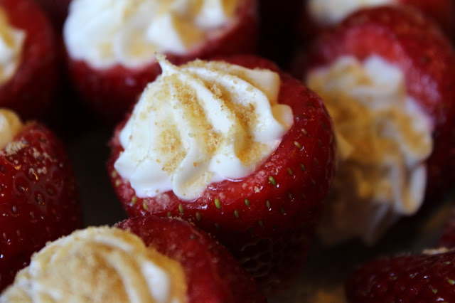 5. Cheesecake Stuffed Strawberries: Two strawberries stuffed with Cheesecake Mix (¼ tsp vanilla, 1 packet of sugar or sugar substitute and 2 tablespoons reduced-fat ricotta.) Sprinkle with cinnamon.