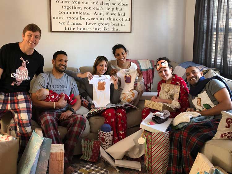 The timing was perfect and this little announcement made the holidays that much more magical! Cory literally spilled the beans at the end of our Thanksgiving prayer. I think my in-laws were in shock and so caught off guard! They were all giving us heck about getting on the baby train all day and of course we fed right into it. We decided to hold the news in from my side of the family for EIGHT WEEKS until we saw them at Christmas! I was dodging phone calls from my mom and brothers left and right. We wanted to see them in person and it was well worth the wait to see their reactions and get it all on video. I honestly had to tell some people because I was bursting with this news. I shared it with a few friends and then any random person I could. Literally, I shared the news with my mail man and my waxer!