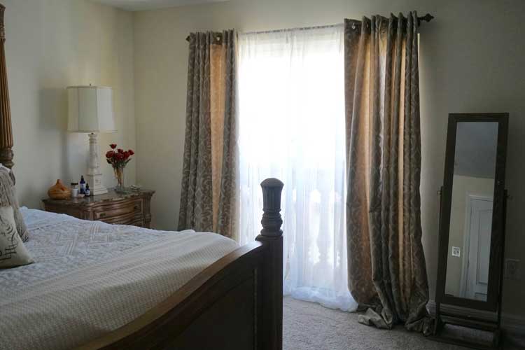 Purchase New Drapes: I love the traditional look of the tan drapes we have, but our room gets a beautiful natural light that we rarely were able to wake up to. So, I decided to let the light in by adding these white linen drapes. I love the two-tone look, but I also love having the option to black out the room if need be. Having light filtering into your home simply makes you happier! So go ahead and let the light shine through.