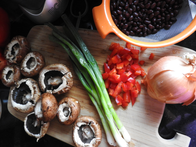 So without further a do….here is the recipe for my mushroom/black bean burger (should make 4 patties):