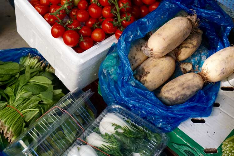 Think of vegetables as the main dish and protein as the side dish: Vegetables here are the main event. Many nights you will see 3 plus vegetable dishes on the table with 1-2 meat dishes and 1-2 fish dishes. Usually in America protein takes center stage. Here…vegetables shine bright like a diamond!