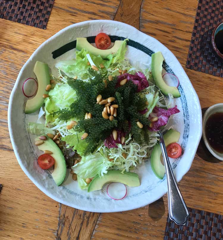 Green Caviar or Sea Grapes: I know we just spoke about sea vegetables, but “Green Caviar” otherwise known as Sea Grapes (Shown on top of the salad above) is something so new, exotic and delicious that I believe they deserve a category of their own. When we first were presented with this gorgeous salad I assumed the tiny green clusters were fish eggs. Upon tasting them they were had a mild flavor and freshness I haven’t seen anywhere else. They literally pop in your mouth. The only website I found for them is this one. If anyone knows where I can get them please share!