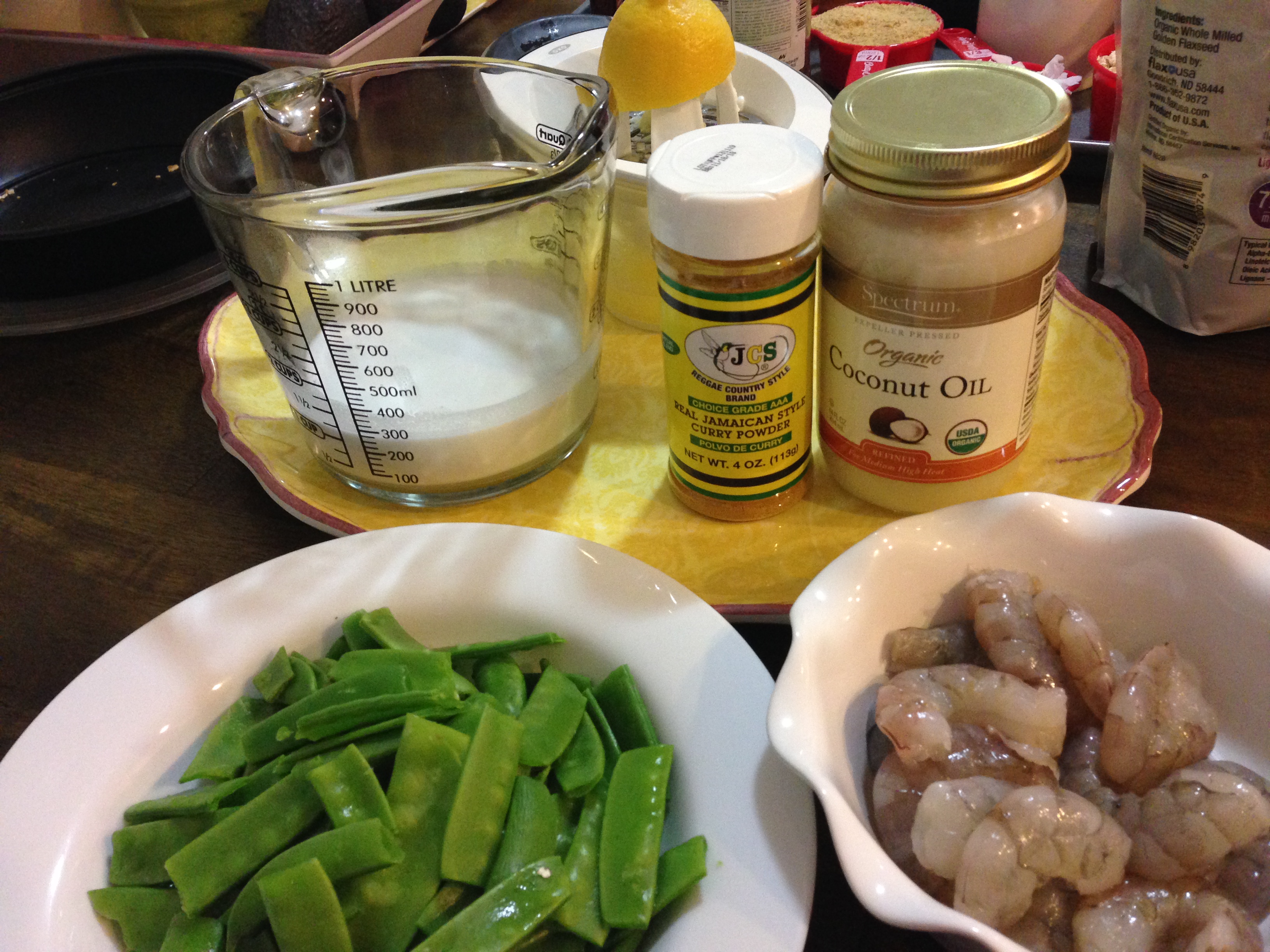 Directions: Melt oil over medium heat. Add curry, and let cook until carmel in color. Add shrimp and snap peas. Let cook until almost pink and peas start to become tender. Throw in coconut milk and lemon juice. Bring mixture to a boil, then reduce heat and serve over brown rice or quinoa.