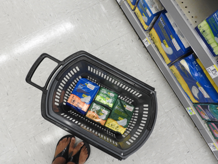 I haven’t been to the feminine care aisle in years and trying to navigate through it is darn overwhelming! There are braids and cups and underwear, oh my! I always reach for my regular two boxes of tampons, get them quickly into my basket, and run quickly to the checkout counter, because I am a mature woman you know?