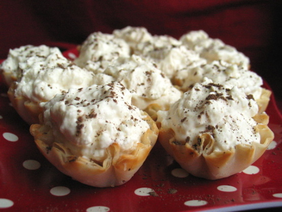 Combine cream cheese, Stevia, coffee and vanilla in medium bowl and mix until smooth. Cover and chill 2 hours. Fold in TruWhip. Using a spoon or a pastry bag, fill tart shells. Chill in refrigerator for 30-40 minutes before serving.