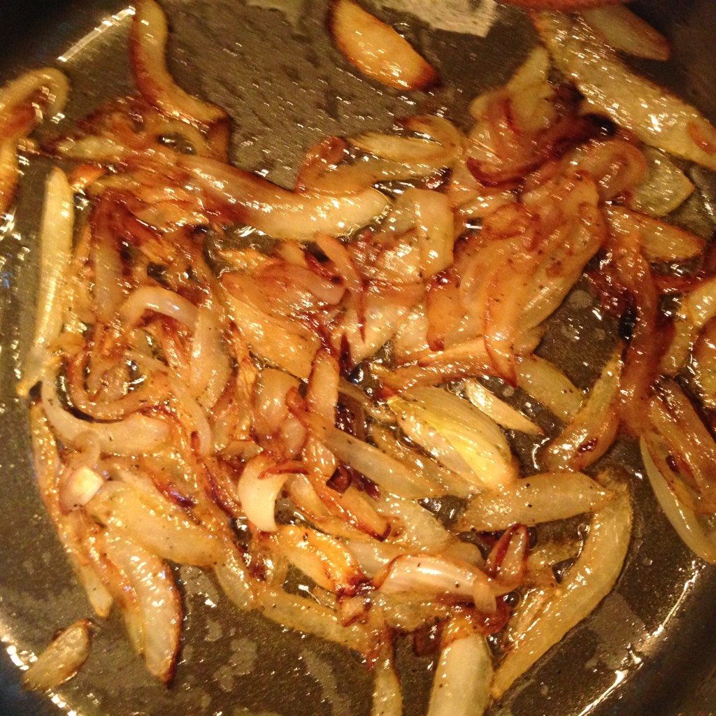 Heat oil on medium heat, add chopped onion and cook until caramelized in color and pungent smell is reduced. Add onions to a bowl and add mushrooms and raisins to pan where onion was cooked. Cooked until mushrooms are soft and raisins are warm and plumped.
