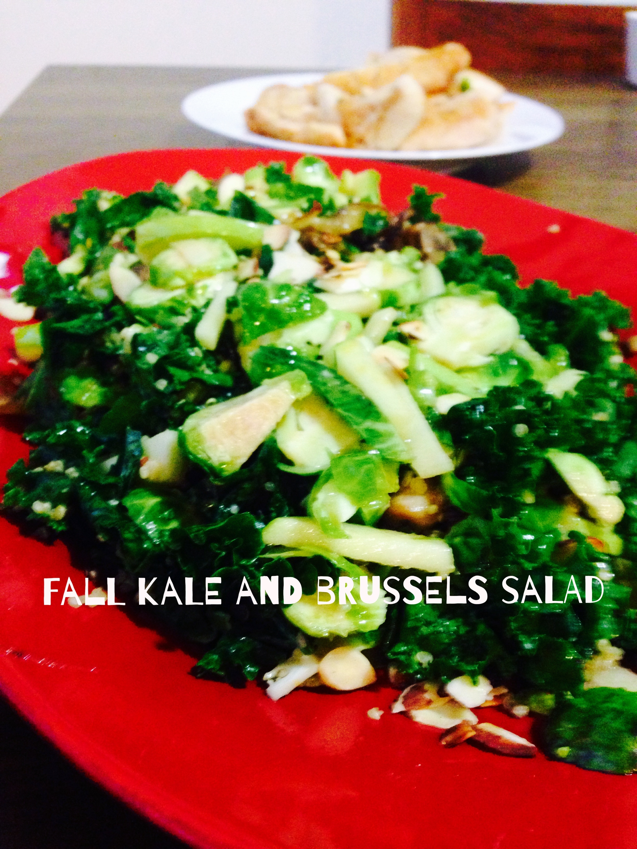 Let the detoxing begin…even though we live in Florida, and it is warm all year round, the humidity is slowly rolling out and I am enjoying all things fall and pumpkin. I wanted to utilize kale and brussels sprouts to make a hearty salad that even a midwest man can love. I bring to you my sweet, savory, crunchy fall kale and brussels salad.