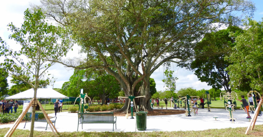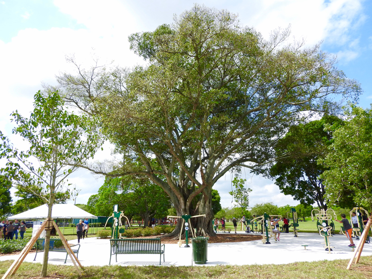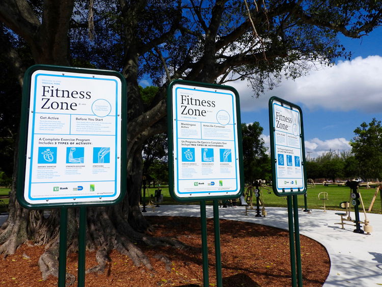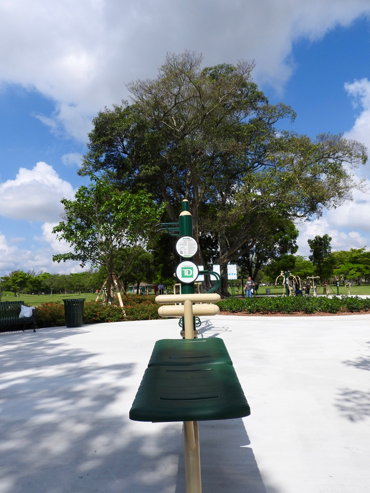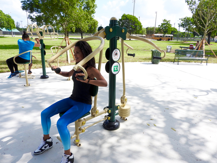 This past week I stopped by the grand opening of the new Fitness Zone at Tropical Park in Miami; the Fitness Zone is part of an ongoing collaboration with the Miami-Dade Park Recreation and Open Spaces Department ongoing collaboration with The Trust for Public Land Fitness Zone® program, and this particular one was sponsored by TD Bank. When I first pulled up it was exciting to see families of all different ages and backgrounds in their bright spandex, eager to try out the new equipment. There was everything from a chest press machine to a partner leg press and everything in between; enough for a full body workout that was anything but ‘a walk in the park’. The best part about the Fitness Zone was that all the equipment was shaded under an amazingly breathtaking tree. It looked like something straight out of Animal Kingdom or ‘The Lion King’. When I walked up to the new Fitness Zone not only was I impressed by the green space, but I also felt that this was an extremely welcoming space that will only invigorate the community that surrounds Tropical Park.