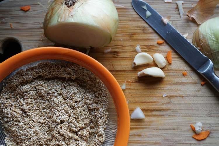 Grains: Make 3-4 cooked cups of the grain of your choice. I like to cook quinoa or faro to add to salads, omelets or as a side dish throughout the week.