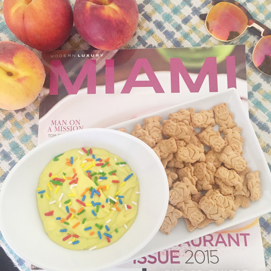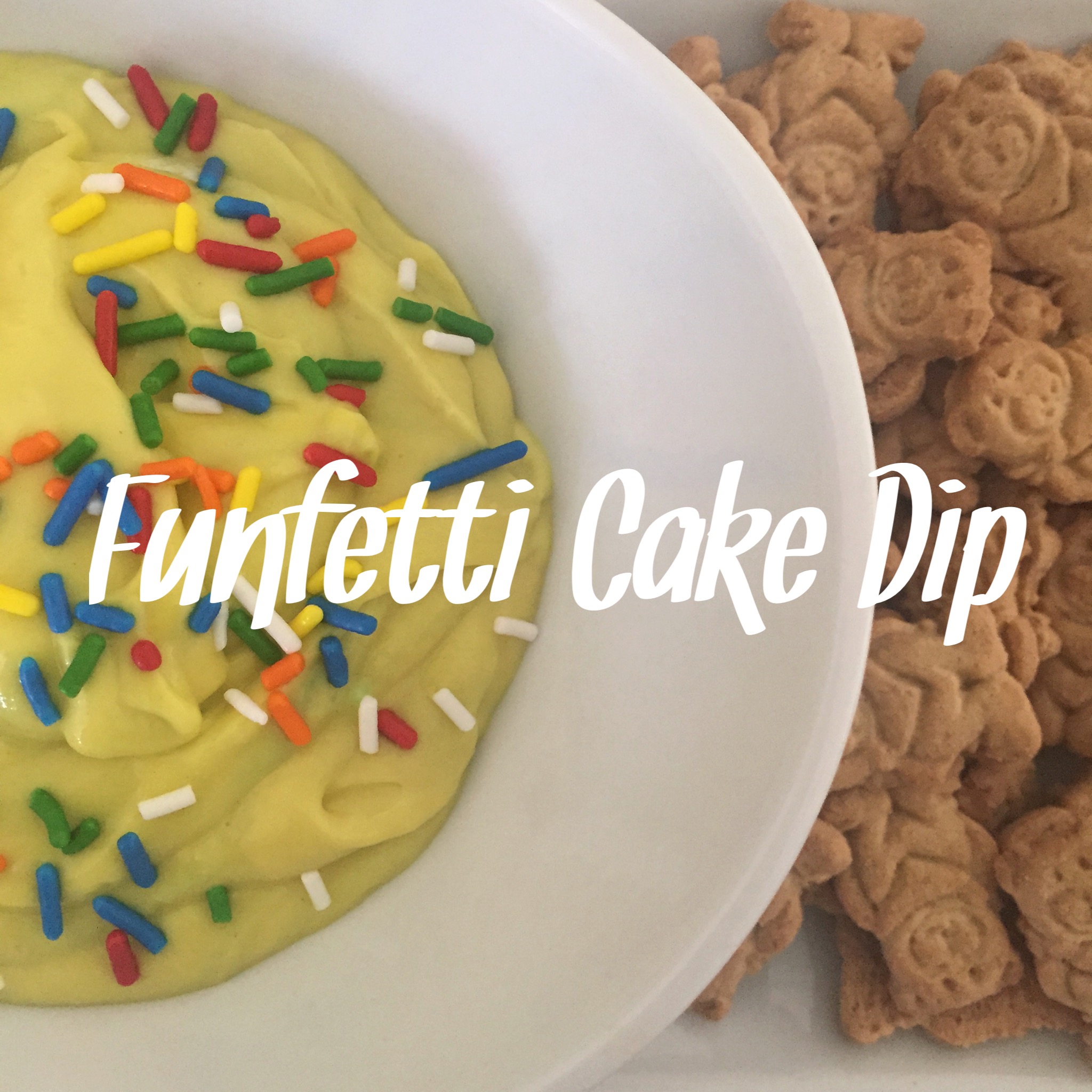 Top with sprinkles and serve with something equally yummy. I found awesome organic teddy grahams, and they were the perfect compliment to this yummy, birthday cake-cake-cake dip. My godson and cousins are coming to visit very soon, and I think if I make this for them cousin Tay is going to get lots of cuddles and kisses!