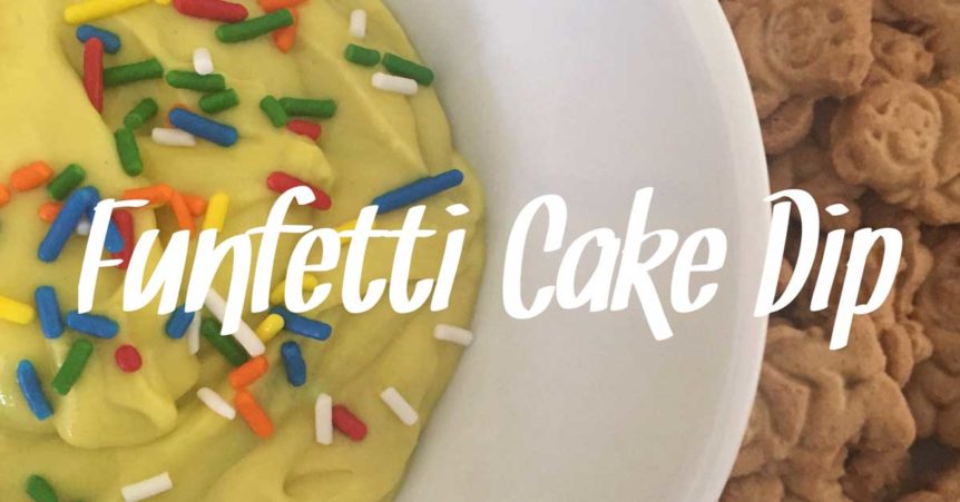I love looking for quick/healthy recipes that will satisfy even the smallest of cravings. Lately I have had a massive sweet tooth, and I will let you in on a little known secret…Lindt milk chocolate truffles are my weakness. I pop one or two a week, and that is plenty enough sweet stuff for me. I usually crave salty foods, not sweet, but some days I have the need for the type of quick sugary fix that my fruit salad simply will not cure. Over the past couple of years I had to stop baking Funfetti cupcakes for my hubs because I would end up eating more than my fair share. Who doesn’t love anything Funfetti? So when I saw that there was a Funfetti Dip pinned over and over and over again I knew that it had to be good, and when I realized it only had three simple ingredients…I had to give it a try for myself!