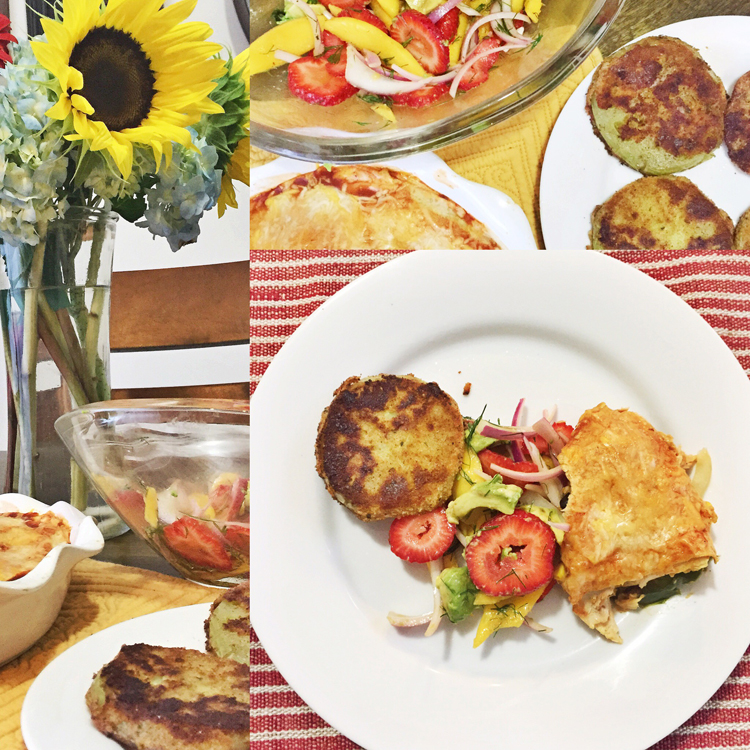 ken casserole with dill fruit salad and baked not fried green tomatos.