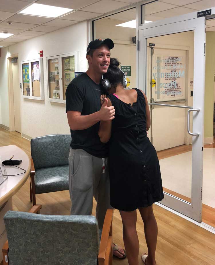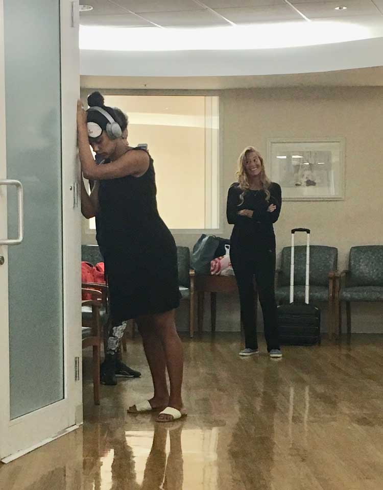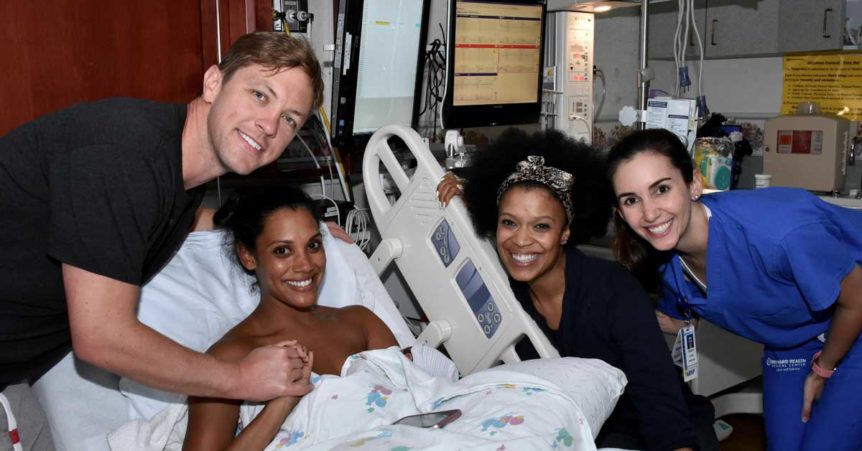As she entered our house, she looked at me and smiled and simply said that we are in “Real Labor”, which meant a pattern had formed. We have a three story house, so after wandering around the house naked and in a pattern of hot flashes to chills she helped dress me in my gown while Cory and mom packed up the car. As we made our way downstairs in tandem, she rode every “wave” with me by squeezing my hips, forcing me to release tension from my hands and neck and gave gentle yet authoritative direction. As we made our way to the hospital at 3:30 AM, I had an eye mask on, my hypnobirthing tracks on and I simply focused on my breath. In what felt like five minutes, I was being wheeled into labor and delivery and had to sign papers and release forms in between contractions. By the time I was placed in triage, I had bright lights glaring in my eyes, monitors on my belly and fingers in all sorts of crazy places. Nurses asking Iana and Cory, what I was listening to, and I tried my best to remain limp in such an uncomfortable, vulnerable position. Much to everyone’s surprise, I was 6 CM dilated and immediately asked to WALK into the delivery room. Like, EXCUSE ME? I was slapped with a “fall risk” bracelet and escorted down the longest hallway ever!