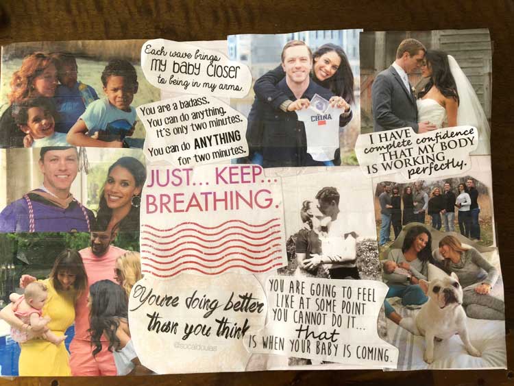 To get my mind off of the mild contractions that were coming every 5-7 minutes, mom and Cory tackled dinner while I got to work on completing my vision board. A homework assignment from my Doula, Iana. You see, if we were going to get this baby Earthside without any medical intervention, I needed to remain calm, focused and simply breathe into every “wave”. We took our Hypnobirthing class at Amazing Births and Beyond with Dr. Vivian Keeler during months 5-6 which gave us almost 4 months to practice the breathwork and listen to the hypnobirthing relaxation tracks and affirmations. After dinner, my mom told me to get some rest and Iana would be in touch every hour and a half to check in. We showered and got in bed and Cory began tracking my contractions. Over the next hour, they became more painful and I could no longer lay in bed as per Cory’s request. Also, he was supposed to be helping me keep track, but like the daddy of a newborn, sleep would ultimately take hold!
