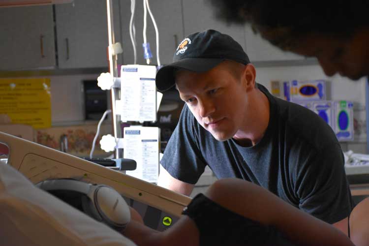 Iana instructed me that the tub was about finished, but she needed to get me on a peanut ball to get him to work his way down. She promptly and swiftly massaged my whole lower body before warning me that the next 3-4 contractions would be uncomfortable, but they were here with me the whole time. Cory at my face and Iana forcing my leg over the peanut, and guys, it literally became an outer body experience. I was shaking, had the chills and felt my baby moving downward. The love of my life holding my hands and Iana coaching me along the whole time. “Deep breaths. Get them out of your chest.” When I felt like I could not go anymore, they told me it was time to get into the tub. Lindsay, our nurse practitioner and the woman who basically treated me my whole pregnancy was on call, she came in and said: “I’ll be right here when you are ready to push.”