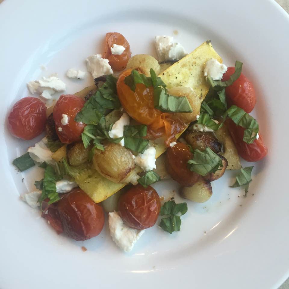 Dinner Roasted Veggies With Goats Cheese: This recipe was a happy accident. I had just made a run to the farmers market and told myself I was going to use all the produce that week. Cory was at a work dinner and roasted veggies sounded delicious! The goat cheese and fresh basil satisfied every taste bud on my  tongue.