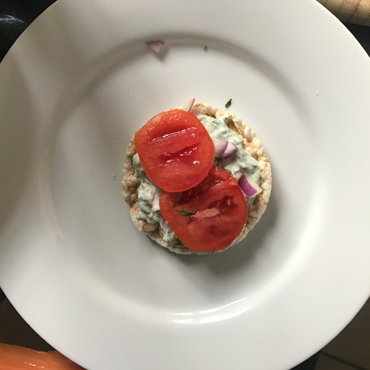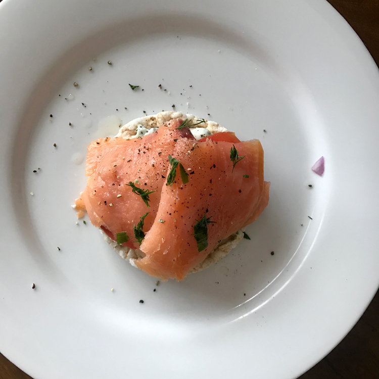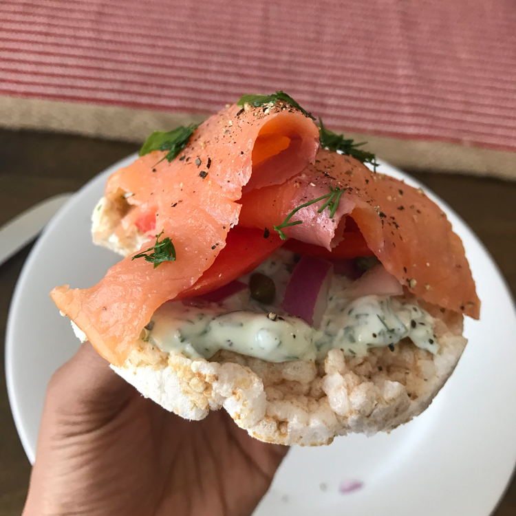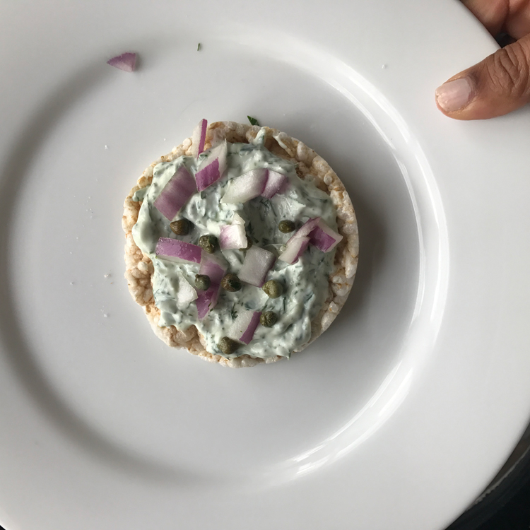 The herbed yogurt spread is what truly elevates this dish and because I swapped the beloved bagel for a rice cake, this recipe remains low in processed carbohydrates and high in protein and flavor! You can make the spread ahead and keep it refrigerated for up to a week. Use whatever herbs you have and top it on anything and everything you make this week.