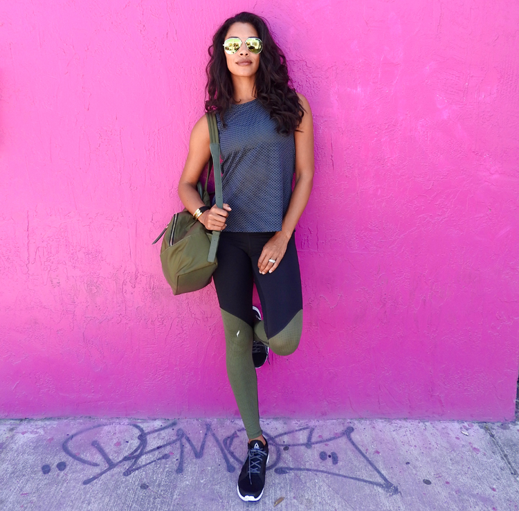 I jumped on the opportunity to try more items because not only are the track pants I picked up at The Restless Soul Shop fabulous, the quality is amazing and the fabric is 100% breathable. For this look I picked out the Helix Pant in Black Army Mesh, The Twist Top in Graphite and the Weave Bra in Metallic Army. The top of these pants hug in all the right places and the bottom keeps me extremely cool while teaching because of the breathable mesh. The top is extremely versatile and can easily transition from a full on high fashion fitness to denim look in no time flat. I wore this outfit on Monday to class and everyone kept asking where to get it…so shop the links above and below or sign up with ShopStyle here and like my photos on Instagram: @TaylorWalkerFit. Every time you like one of my photos with a SS link attached you will receive a shoppable e-mail right to your inbox. Talk about convenient!