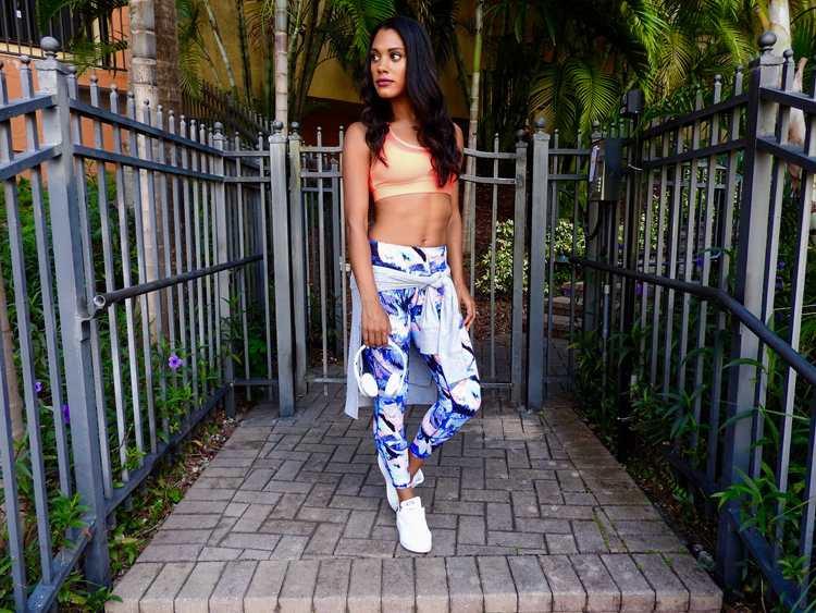 Nowadays, my version of power hour is all about getting the bod moving and grooving! From barre and pilates to bootcamp and kickboxing; you can do it all in these Power Leggings . I tried my first pair of Sweaty Betty tights on for last months #GirlOnFire post. So when SB offered to send me these lava print POWER leggings…how could a girl resist? I really love finding new ways to dress tights up or down. Even when I am not working out I love tights like these for travel, errands and play! I taught barre in them on Tuesday and felt comfortable and secure. The material keeps you dry, and is thick enough to make you feel secure in your downward dog.
