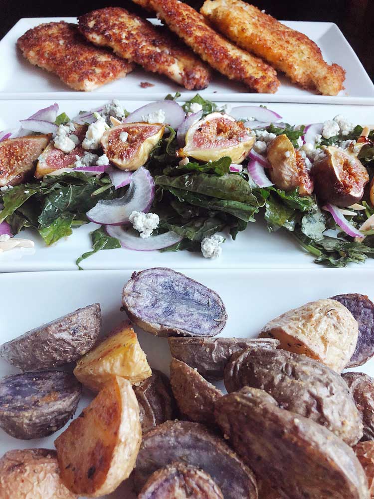 I served this dish with macadamia nut crusted chicken and tri-color roasted potatoes, but you can easily make it an entree by serving it with chicken or salmon!
