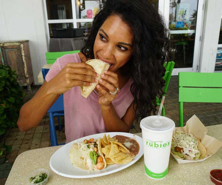 It’s almost Taco Tuesday, kind of my favorite day of the week after Fri-YAY! Give me a tortilla, some protein and fresh avocado and I am one happy girl. When I moved to Florida, fish tacos became a staple in my diet. They are usually on the healthier side yet still satisfying enough to keep you sublimely full and happy. I have my go-to Miami taco spots and often make my own taco bowls, burritos and casseroles in the TWF kitchen. When I go to Pilates in North Miami Beach I often find myself at Rubio’s Coastal Grill. I absolutely love their healthy, protein packed 550 calorie and under menu.