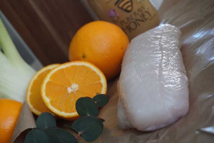 After our tour, we were treated to a fabulous lunch featuring Monterey Bay Seafood ®, Vintage Sweets Heirloom Naval Oranges and Rustik Oven Sourdough Bread. Not only was everything extremely beautiful, fresh and delicious. These simple ingredients inspired me to create today’s recipe. The oranges were the perfect accompaniment to such a light fish. I brought home a whole bag and CJ and I devoured all of them over the course of two days. Vintage Sweets Naval Oranges are California grown oranges that have the perfect balance of acid and sugar and they helped caramelized this dish to perfection. The sourdough bread from the Rustik Oven is Non-GMO and made of simple, clean and real ingredients that create rich flavor and a crusty texture. I chose to let the bread stand alone with an elevated butter because to me, there is nothing more satisfying than a piece of crusty, crunchy sourdough topped with grass-fed butter.