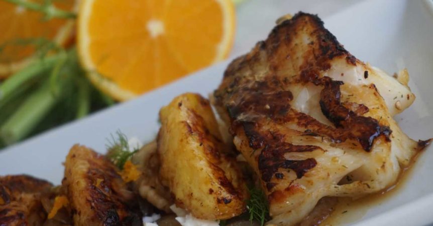 or today’s recipe, I chose wild caught, previously frozen Alaskan Cod from Safeway’s sister store, Andronico’s Market. Cod is a mild white fish that has a tender yet firm texture. I decided to pan sear it and finish it in the oven and it only took ten minutes. I paired the filets with caramelized Vintage Sweet Heirloom Naval Oranges and sopped up the salty sweet sauce with sourdough bread from The Rustik Oven. Overall, I think this is the best fish dish I have ever created and it only took me 20 minutes from prep to plate.