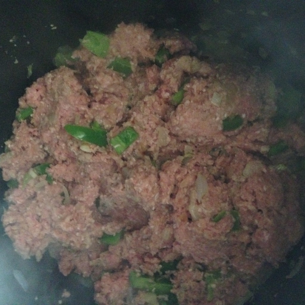Add meat and “Brown”. Note: Turkey does not turn brown like red meat. So, cook until it starts to crumble. Add Chili and Garlic Powder and Mix.