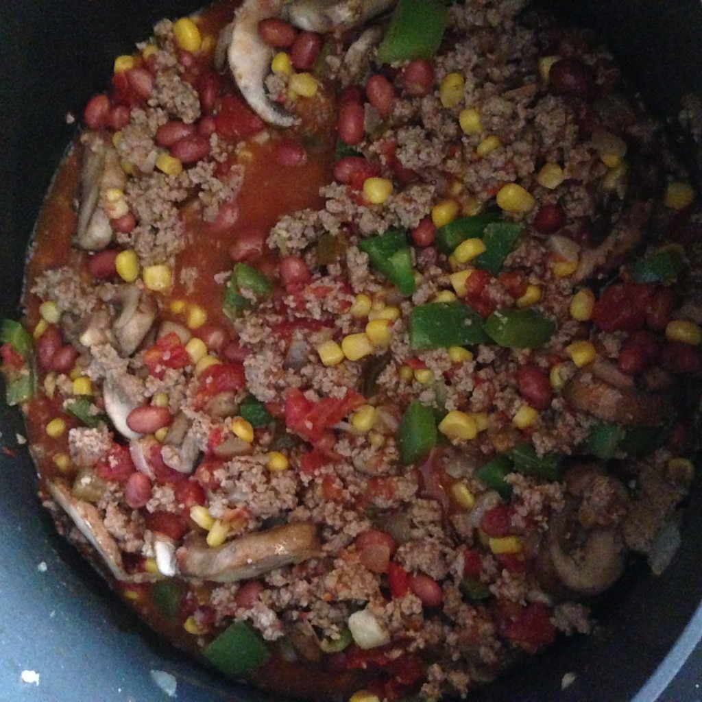 Add mushrooms, corn, salsa, beans and tomatoes. Mix everything together and bring to a boil. Add Salt and Pepper. Simmer on low for an hour. Everything will be cooked through and turkey will be tender.