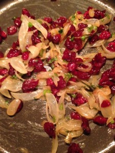 Cook sausage in the pan according to directions. You can also throw them in the oven at 425 for about 15 minutes, but this defeats one-stop-shop cooking. After sausage is cooked in pan or oven, drain pan and set sausage aside. Add butter to pan and melt over medium heat. Add onion, and stir occasionally until onions are golden brown.You may want to turn to low and cover for about 15 minutes (Believe me its worth it) After onions are golden, add sage stir for 1 minute, add cranberries and stir additional minute.