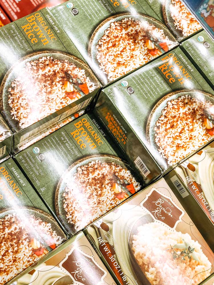 Organic brown and Jasmine Rice: These packets take 3 minutes in the microwave or stovetop and most nights I simply stir fry veggies in coconut oil and add meal prepped chicken and an egg. Delish!