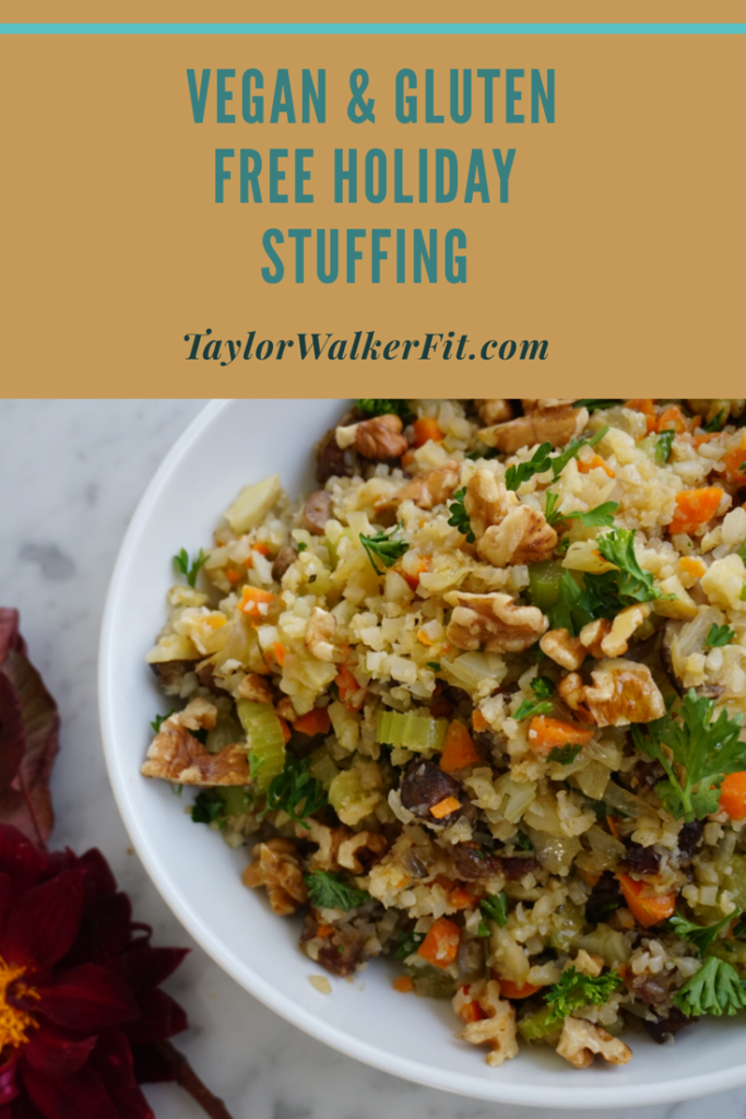 This week I kicked off the PlantbasedxTWF challenge! I have been so inspired by how I feel and those posting that I wanted to create a swoon-worthy, holiday recipe that even the heartiest of meat eaters would love. I am a sucker for stuffing. EVERY YEAR, I down a boatload of Stove Top stuffing. I don’t think, I just do! I love that it takes me back to childhood. That is fills me up with holiday warmth and GOSH DARN IT, it tastes delicious on my favorite thanksgiving sandwich: Warm turkey, stuffing, cranberry sauce and a little mayo on potato bread dipped in hot gravy. OOOOOOOhhhhh gracious, I cannot wait!