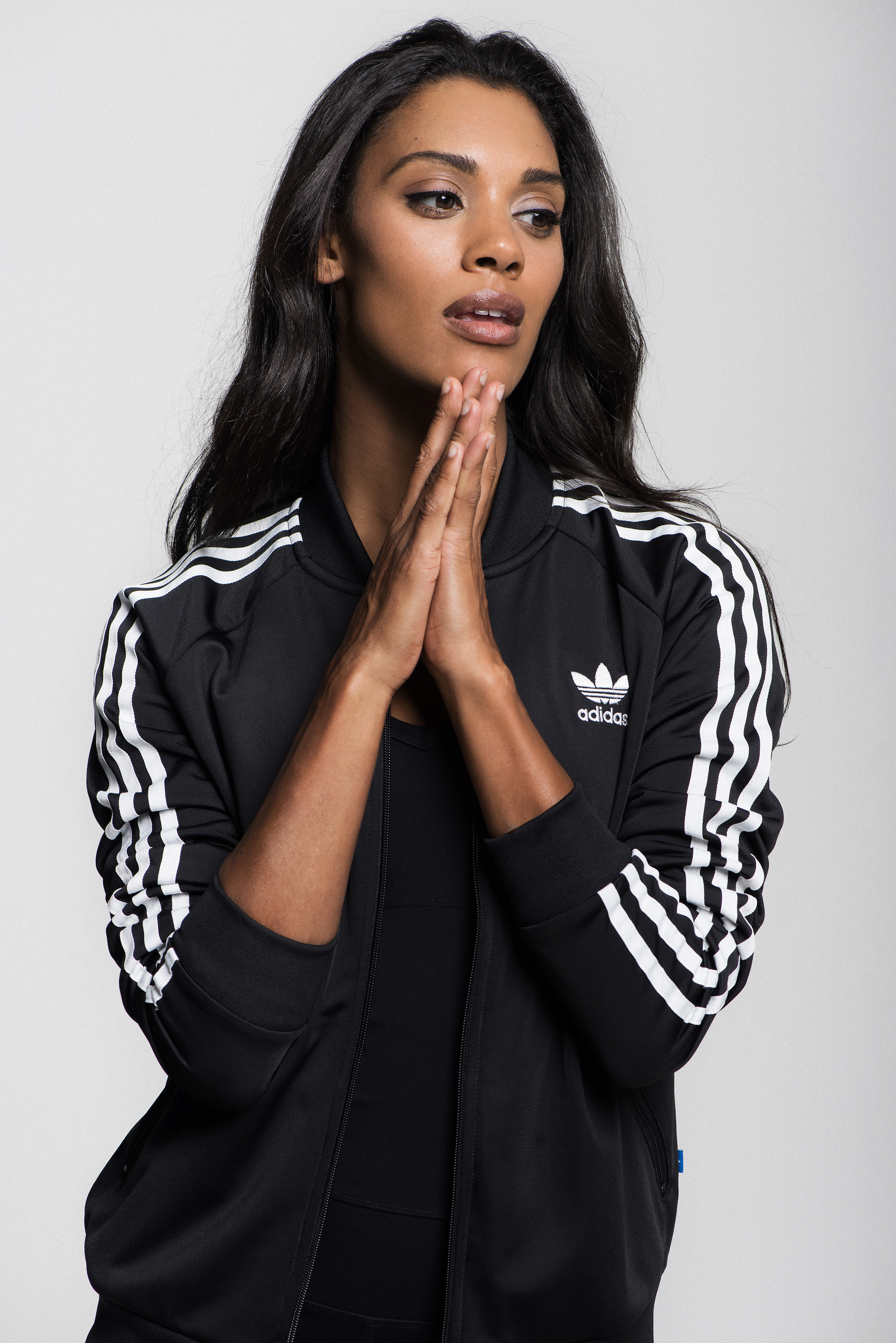 Jumpusuit (Alo Yoga) Jacket (Adidas) Sandal (Vince)