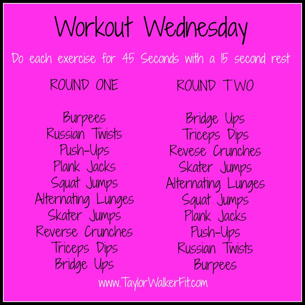 So, with that said, I bring to you an ‘Up and Down The River’ HIIT workout designed by me. Let me know what you think! I will try my best to make ‘Workout Wednesday’ a new thing here on TaylorWalkerFit.com….so please let me know if there are any other kinds of workouts you would like to see and/or try.
